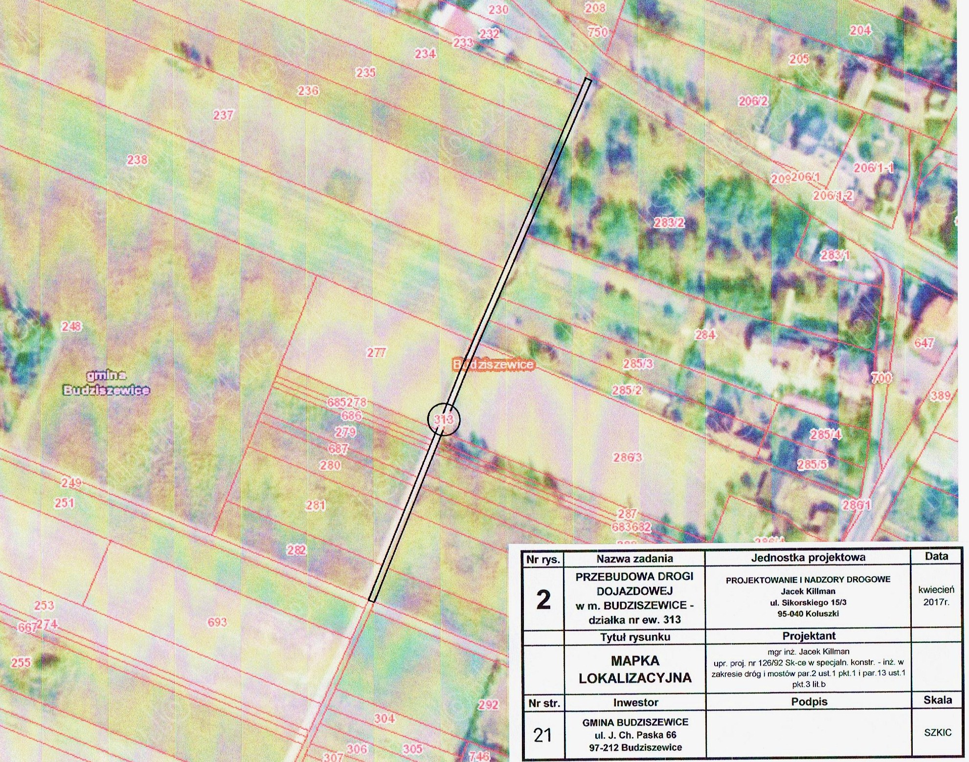 II.1) Nazwa nadana zamówieniu przez zamawiającego: Przebudowa dróg w miejscowości Budziszewice na działkach nr ewid.249 – ul. Cmentarna oraz nr ewid.313, obręb Budziszewice